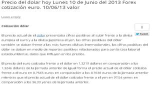 Un resumen de el precio del dólar hoy Lunes 10 de Junio del 2013.